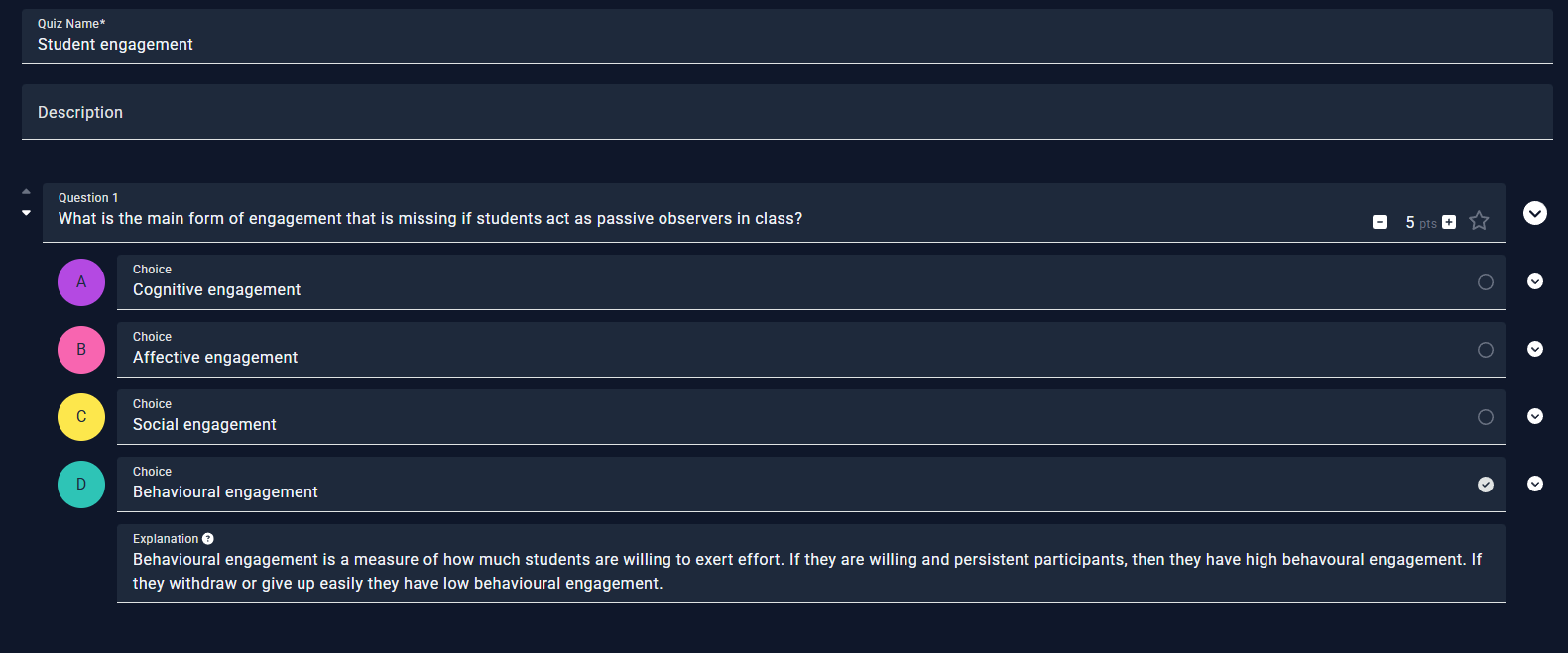 Figure 1: Creating a quiz